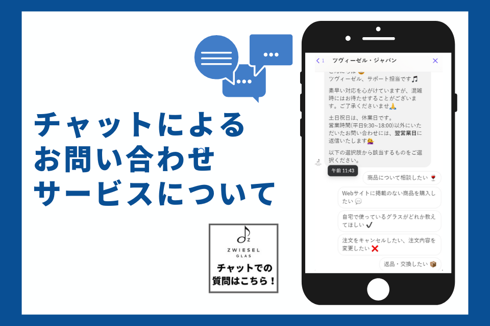 ツヴィーゼル公式オンラインショップでは、チャットによるお問い合わせサービスを行っております。