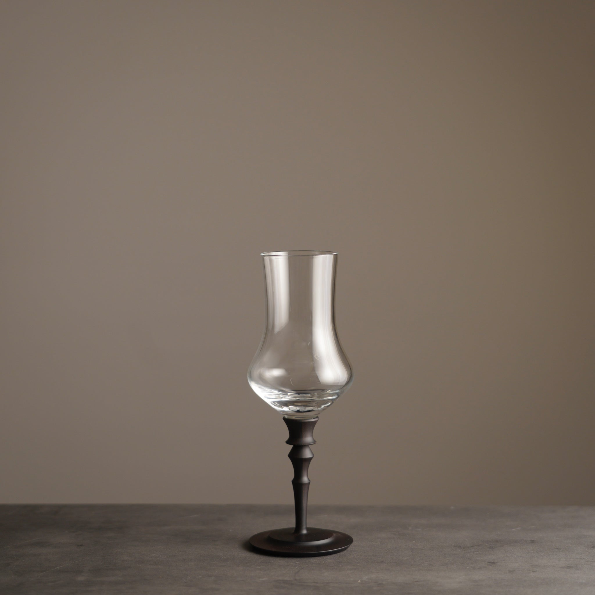 本グラスは、ボウル部分はバースペシャルシリーズのグラッパグラスを、ステム(脚)部分と台座部分は縞黒檀を使用しております。